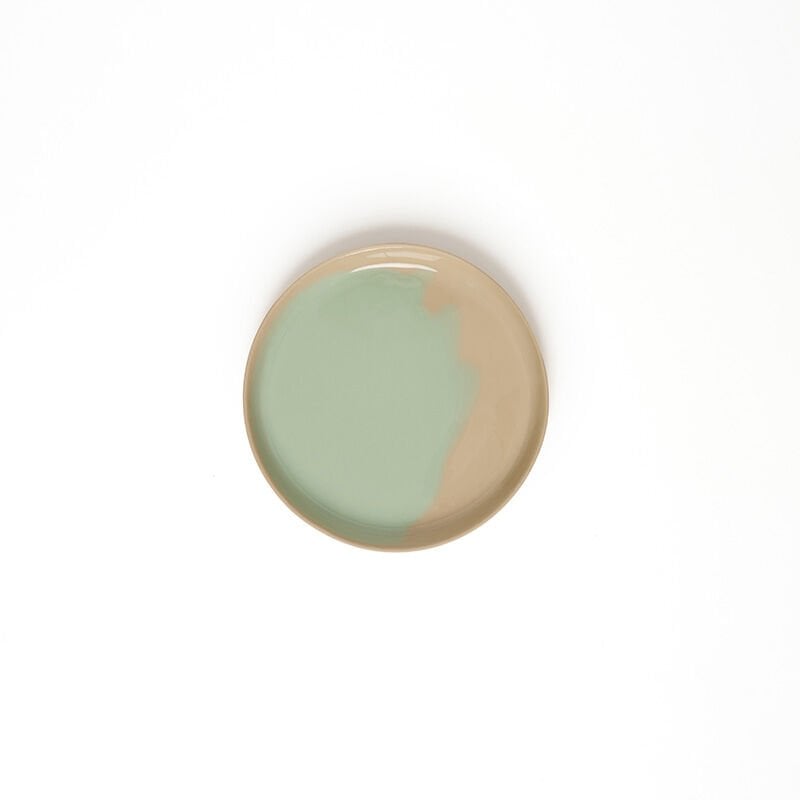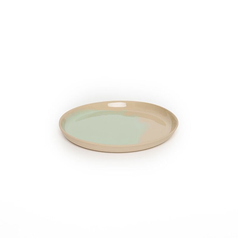 Bej. İçi bej ve mint sırlı. Dış sırsız.
