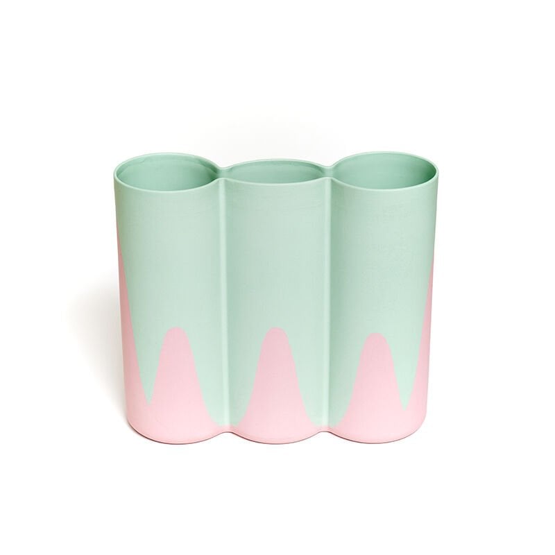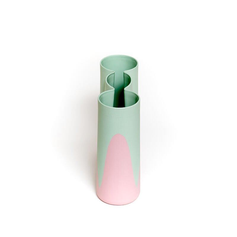 İçi sırlı, dışı sırsız. Pembe ve mint yeşili tonları.