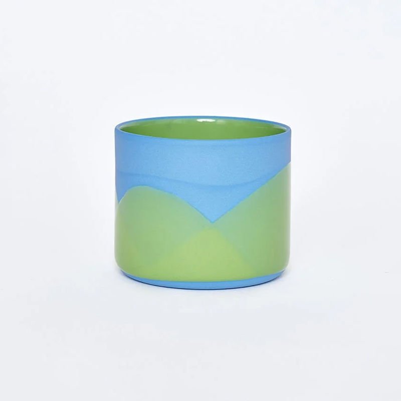 Mavi. İçi fıstık yeşili sırlı. Dış desen fıstık yeşili sırlı.
