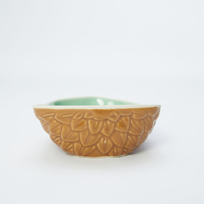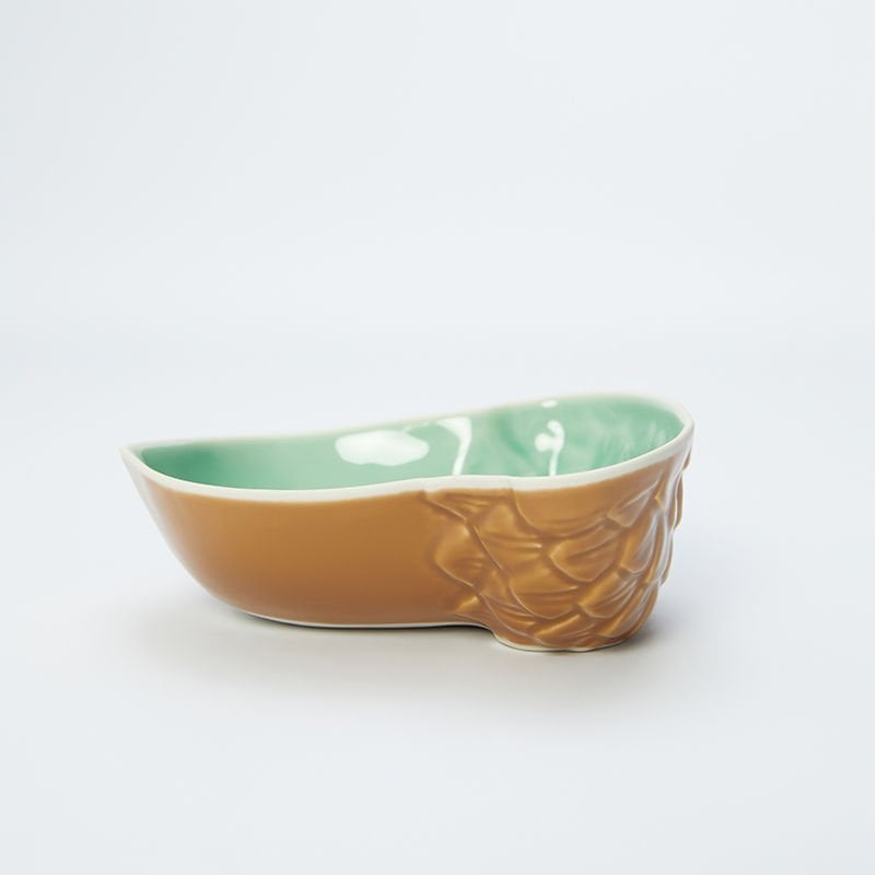 Dış Kahverengi. İçi mint rengi sırlı. Ağız beyaz sırsız.